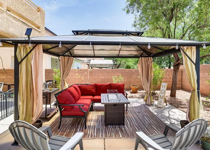 Situada en el distrito North Las Vegas, la casa de vacaciones también está a unos 10 minutos en coche de lugares de ocio como el Galaxy Cannery. Los huéspedes encontrarán el Planetario a 6 km de esta villa, y el Paseo de la Fama de Las Vegas está a 7 km. Entre los lugares de interés educativo a unos 15 minutos en coche de la North Las Vegas Home With Hot Tub - 14 Mi To Strip! se encuentra Legacy High School.